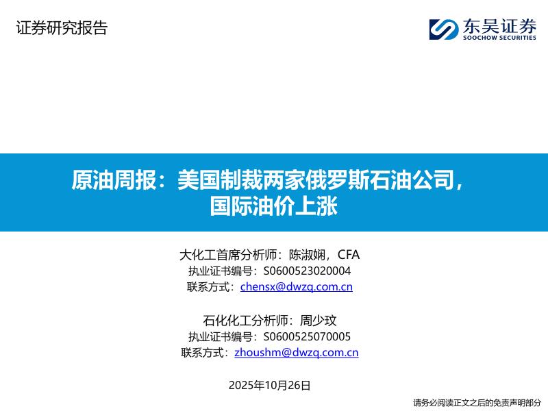 东吴证券:原油周报:美国制裁两家俄罗斯石油公司,国际油价上涨.pdf