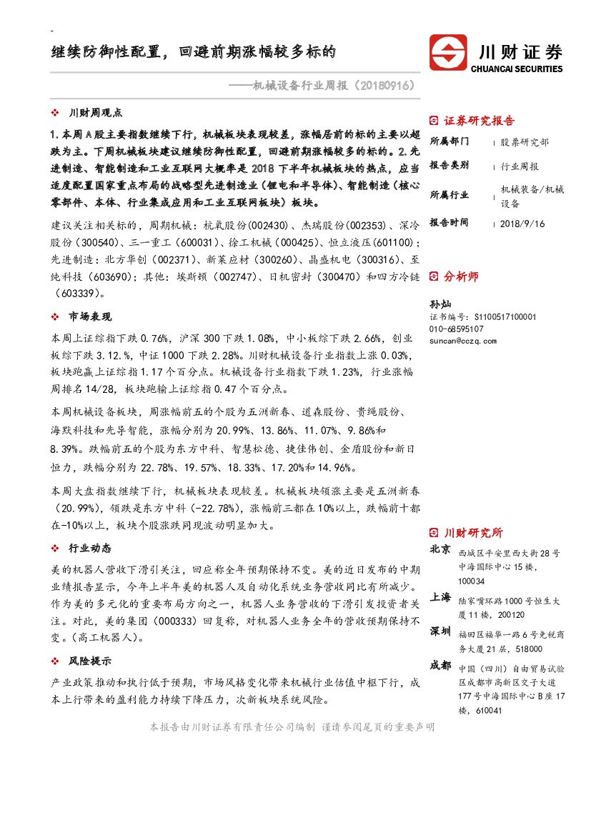 川财证券:机械设备行业周报:继续防御性配置,回避前期涨幅较多标的.pdf