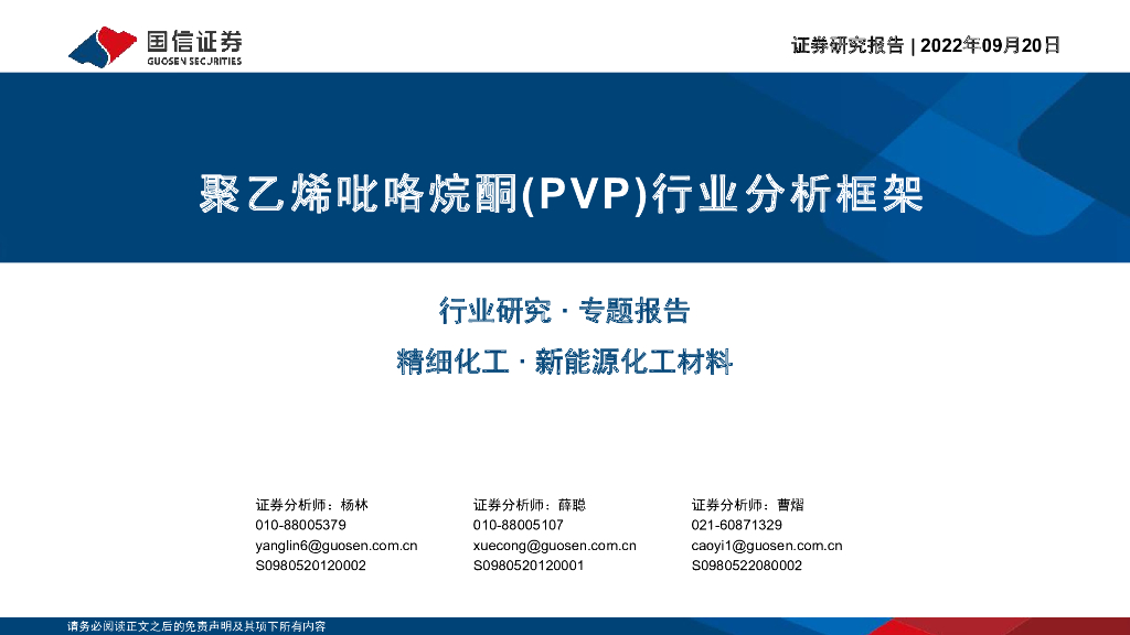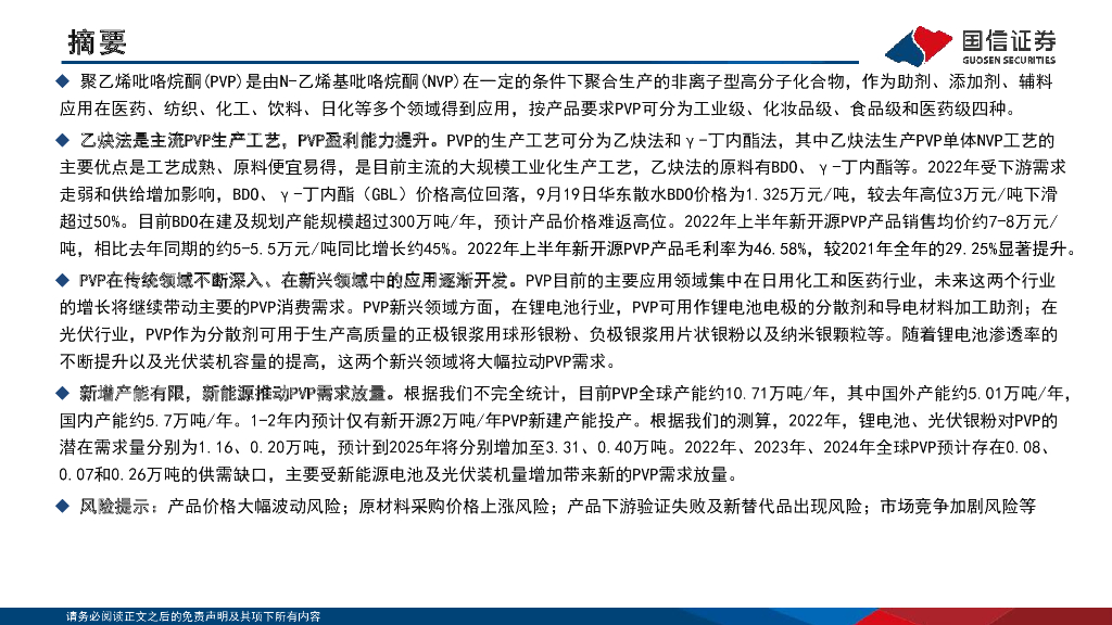 国信证券:聚乙烯吡咯烷酮(PVP)行业分析框架.pdf