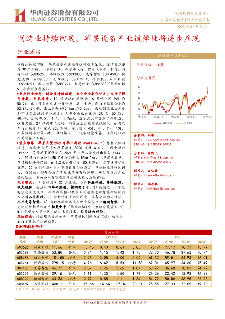 华西证券:机械设备行业研究周报:制造业持续回暖,苹果设备产业链弹性将逐步显现.pdf
