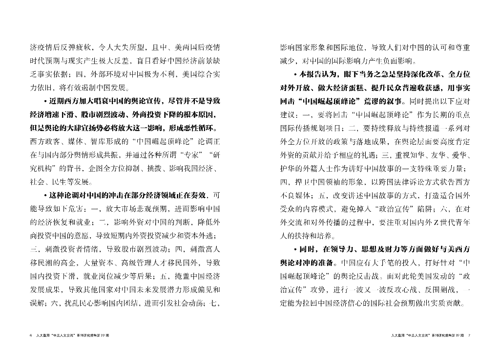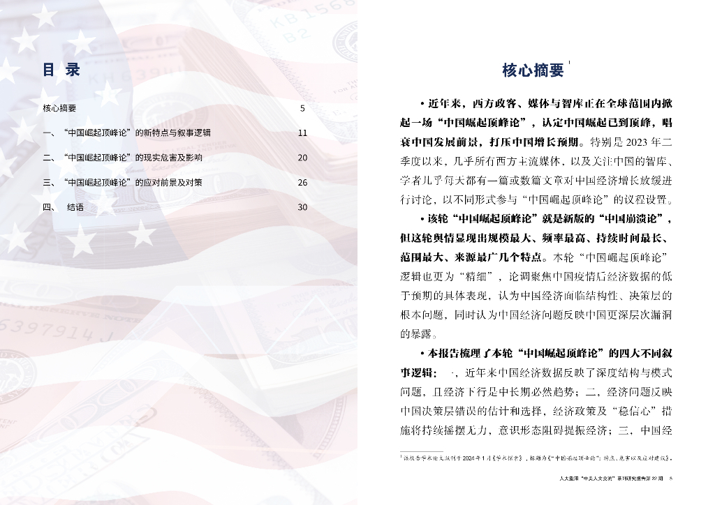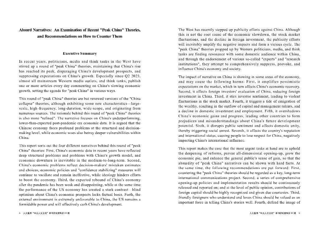 中国人民大学重阳金融研究院:2024人大重阳“中美人文交流”系列研究报告第22期:荒谬的叙事:西方兴起“中国崛起顶峰论”的梳理及应对建议.pdf
