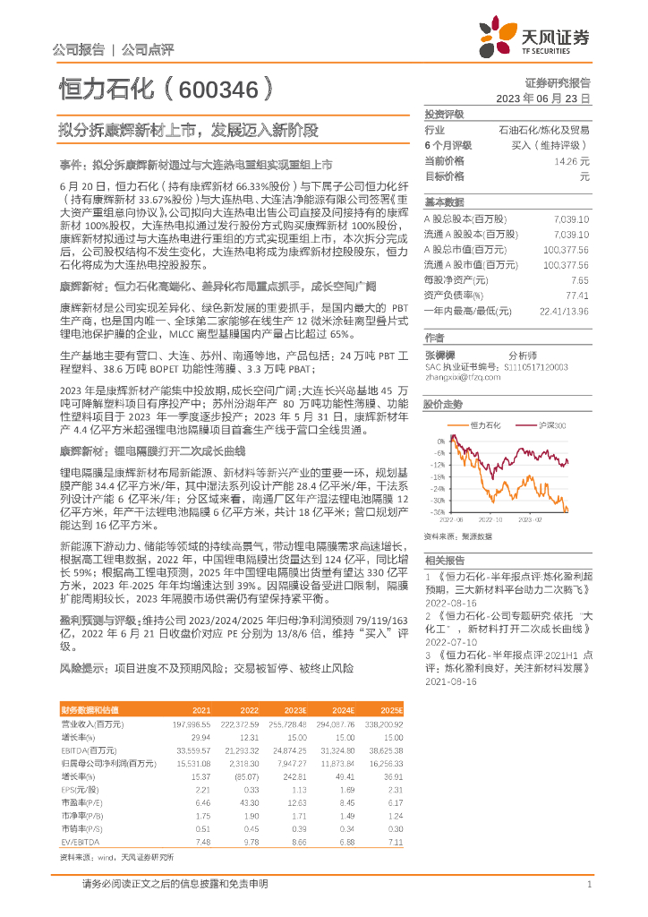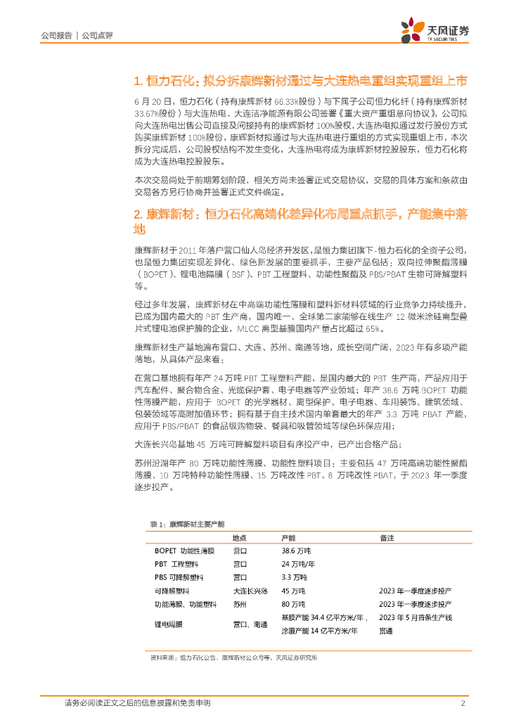 天风证券:恒力石化(600346)-拟分拆康辉新材上市,发展迈入新阶段.pdf