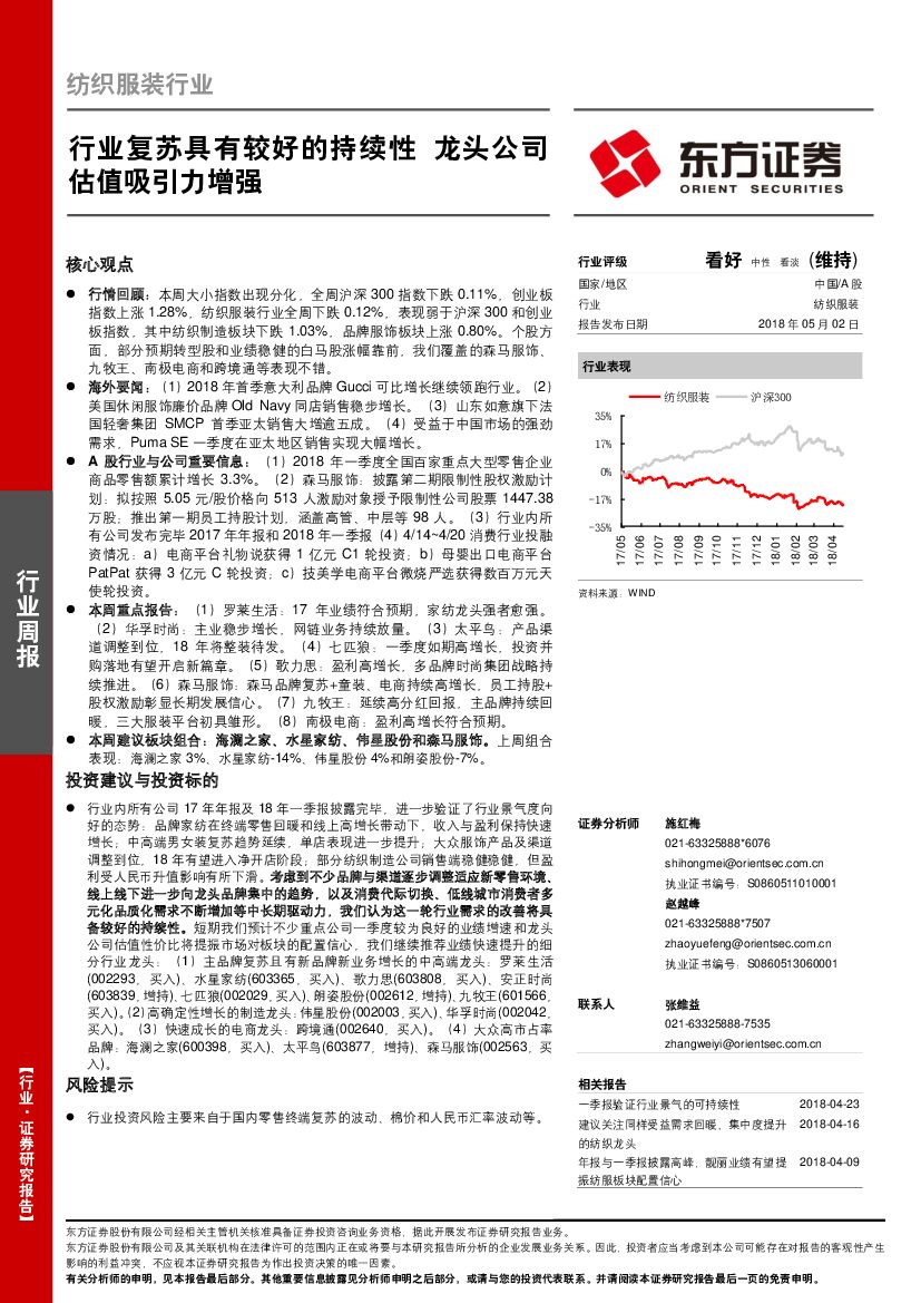 东方证券:纺织服装行业周报:行业复苏具有较好的持续性 龙头公司估值吸引力增强.pdf