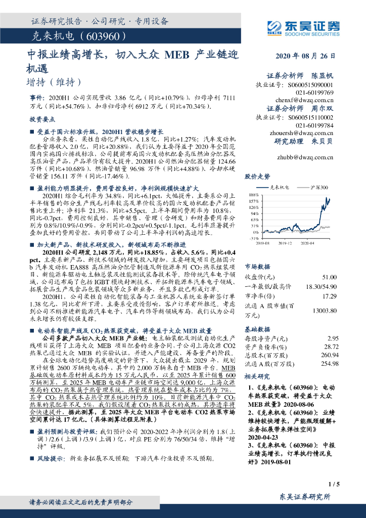 东吴证券:克来机电(603960)-中报业绩高增长,切入大众MEB产业链迎机遇.pdf