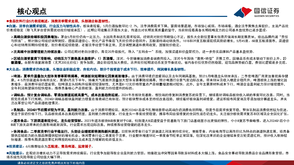 国信证券:食品饮料行业6月月度策略:消费淡季需求弱复苏,行业压力与韧性共存.pdf