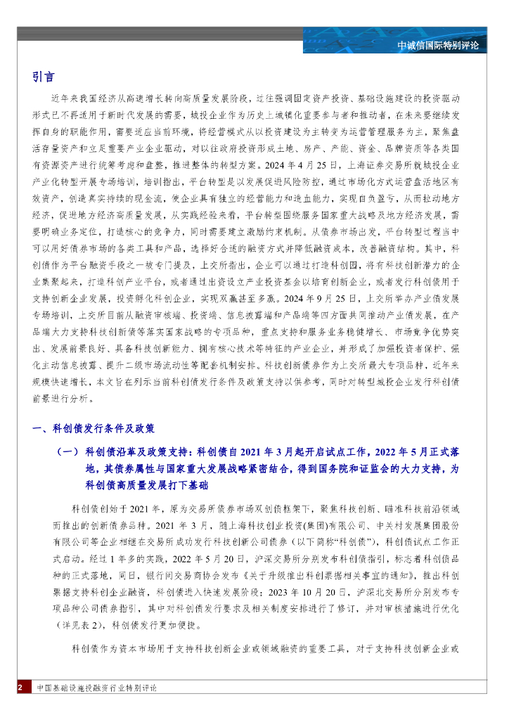 中诚信国际:基础设施投融资行业:转型城投企业科创债发行分析及前景展望.pdf