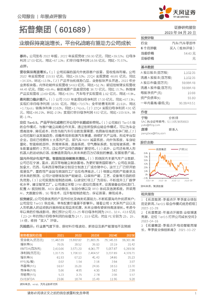 天风证券:拓普集团(601689)-业绩保持高速增长,平台化战略有望助力公司成长.pdf