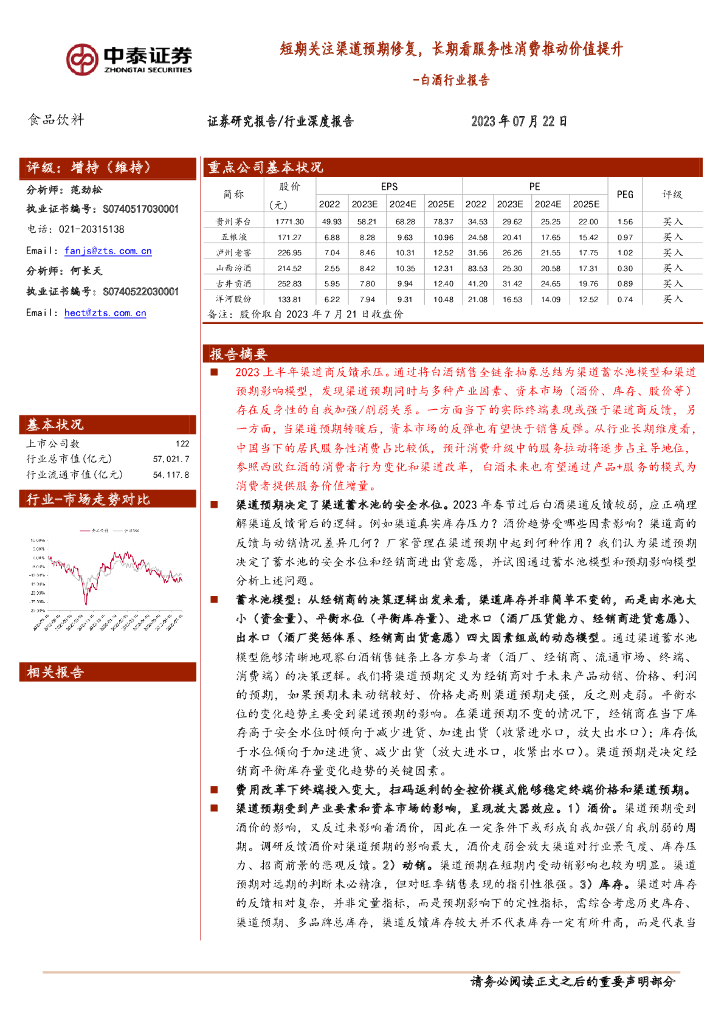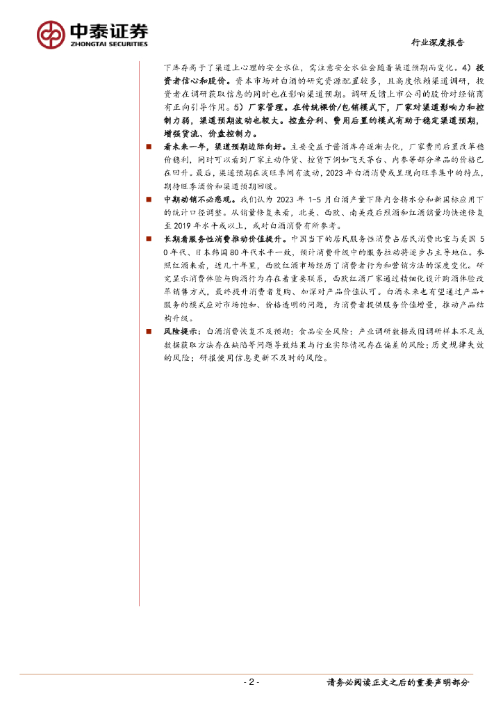 中泰证券:白酒行业报告:短期关注渠道预期修复,长期看服务性消费推动价值提升.pdf