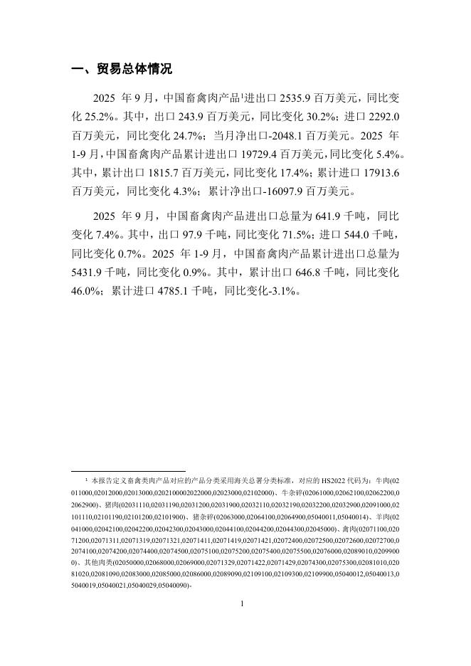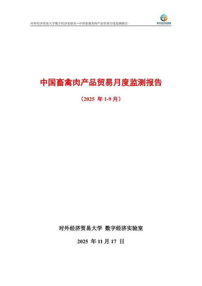 对外经济贸易大学:中国畜禽肉产品贸易月度监测报告(2025年1-9月).pdf