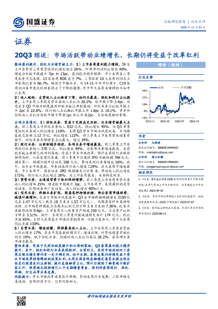 国盛证券:证券20Q3综述:市场活跃带动业绩增长,长期仍将受益于改革红利.pdf