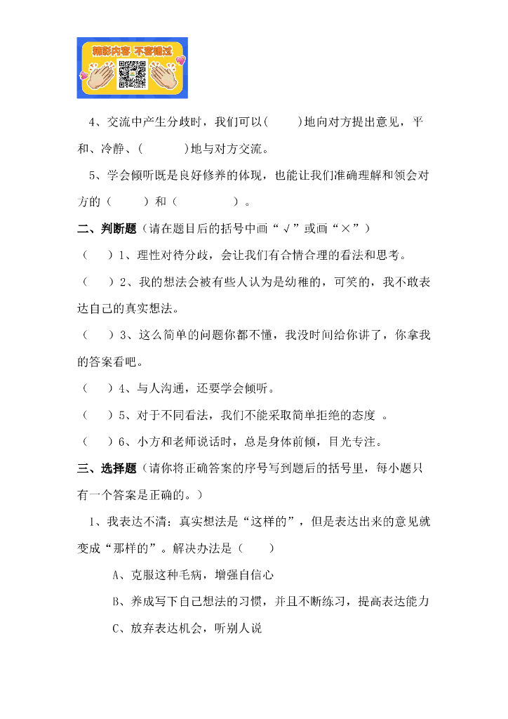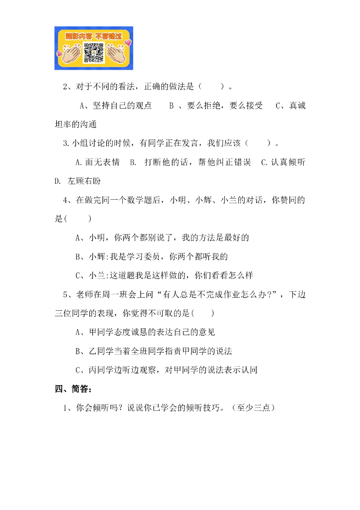 五年级上册道德与法治一课一练 第二课(含答案).doc
