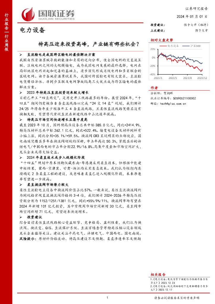 国联证券:电力设备行业周报:特高压迎来投资高峰,产业链有哪些机会?.pdf
