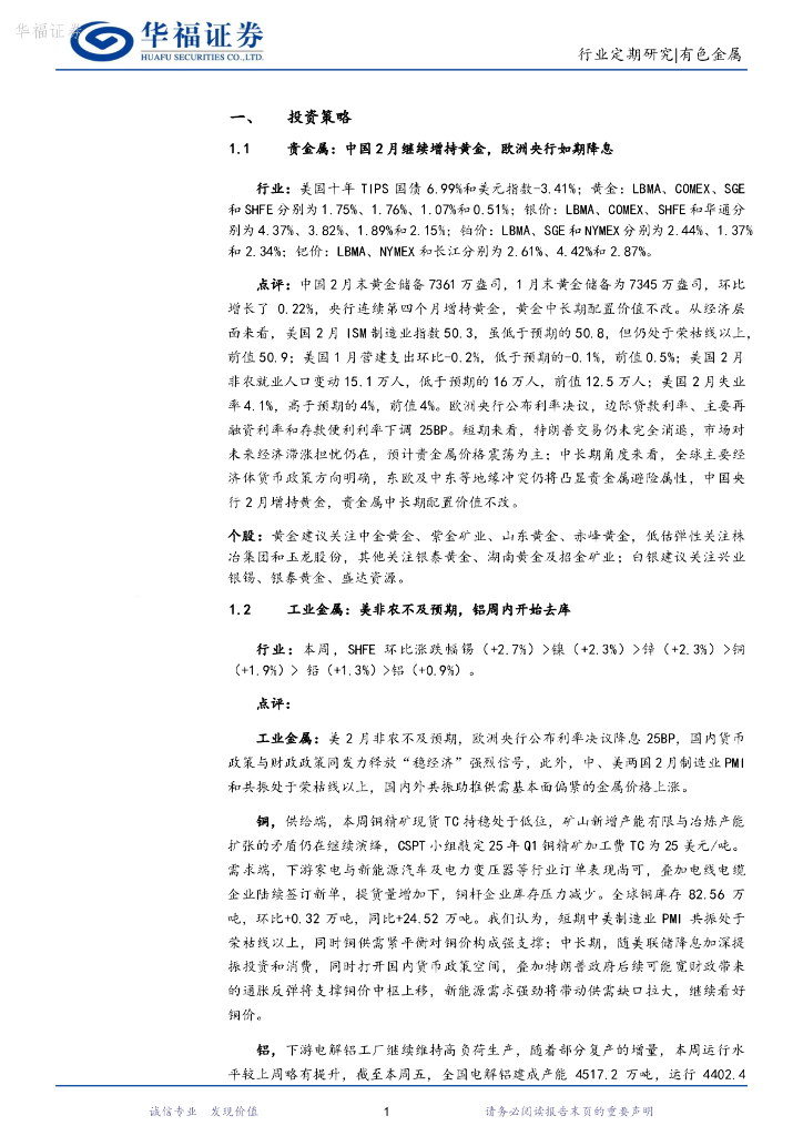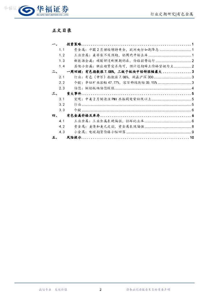 华福证券:有色金属行业周报:中国2月继续增持黄金,铝周内开启去库.pdf