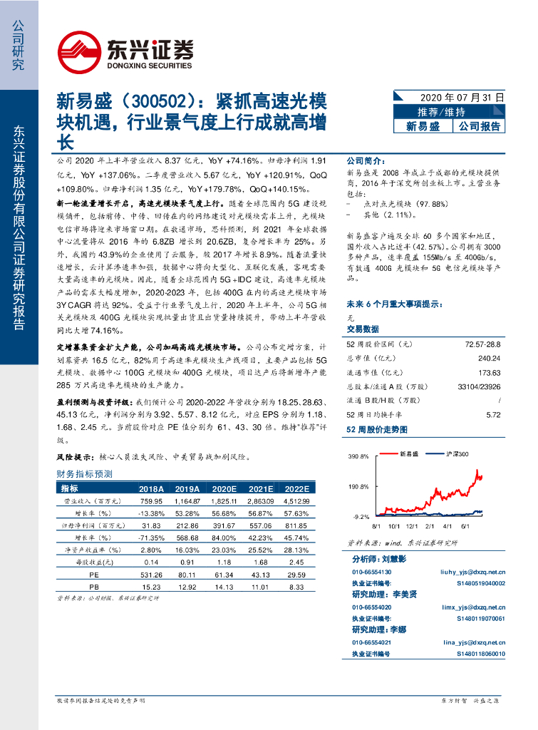 东兴证券:新易盛(300502)-紧抓高速光模块机遇,行业景气度上行成就高增长.pdf