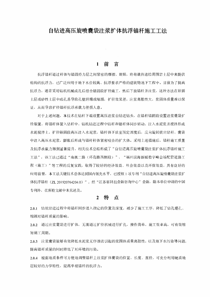 高压旋喷囊袋注浆扩体抗浮锚杆施工工法.pdf
