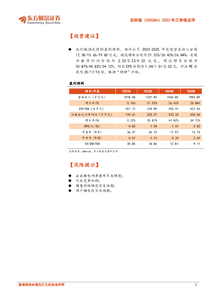 东方财富证券:安科瑞(300286)-2023年三季报点评:盈利能力提升,业绩符合市场预期.pdf