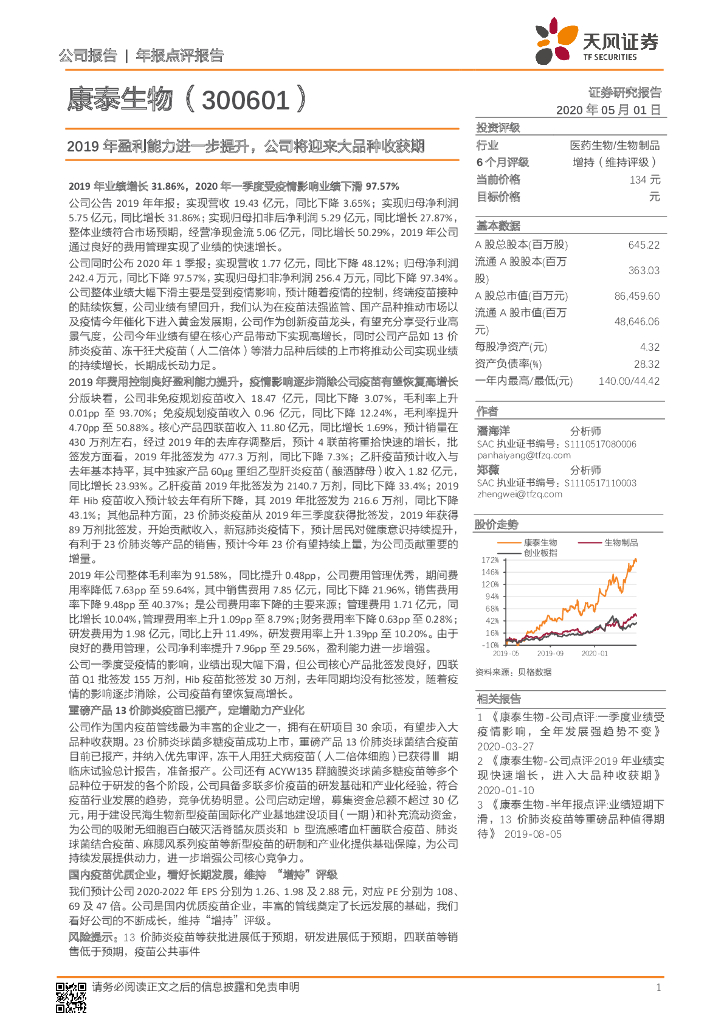 天风证券:康泰生物(300601)-2019年盈利能力进一步提升,公司将迎来大品种收获期.pdf