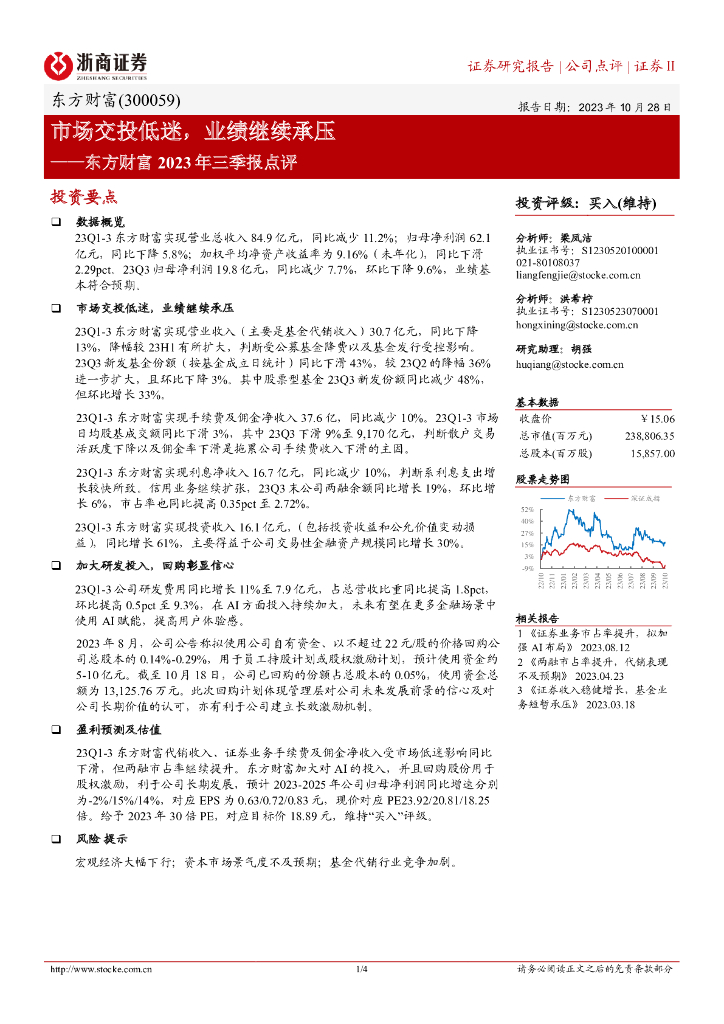 浙商证券:东方财富(300059)-市场交投低迷,业绩继续承压.pdf