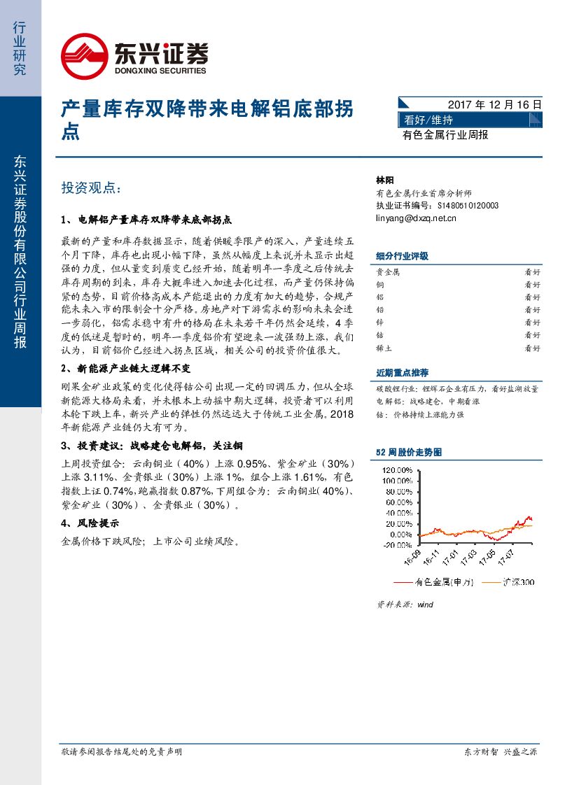 东兴证券:有色金属行业周报:产量库存双降带来电解铝底部拐点.pdf