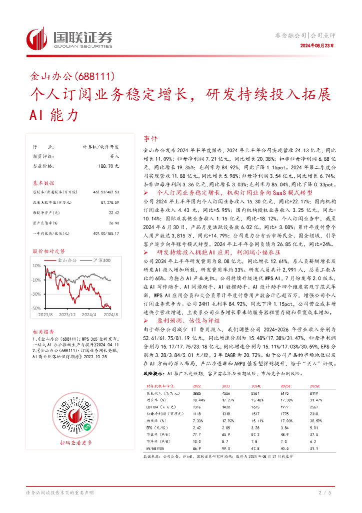 国联证券:金山办公(688111)-个人订阅业务稳定增长,研发持续投入拓展AI能力.pdf