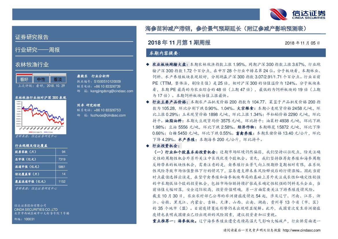 信达证券:农林牧渔2018年11月第1期周报:海参苗种减产滞销,参价景气预期延长(附辽参减产影响预测表).pdf