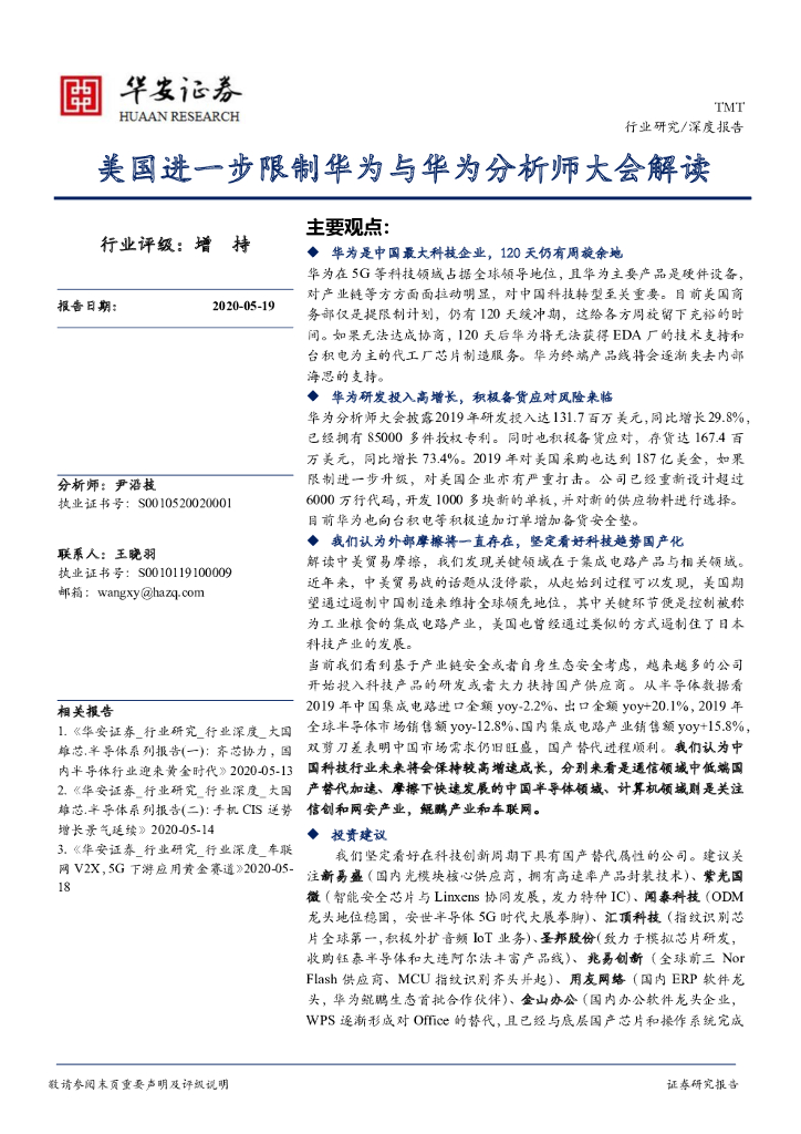 华安证券:TMT:美国进一步限制华为与华为分析师大会解读.pdf
