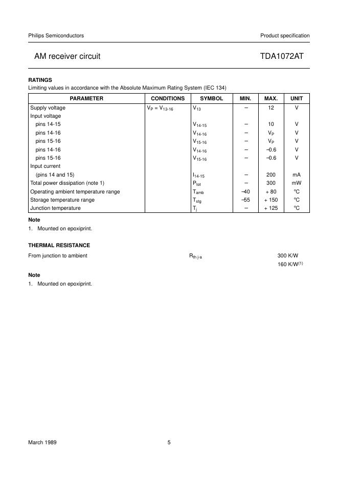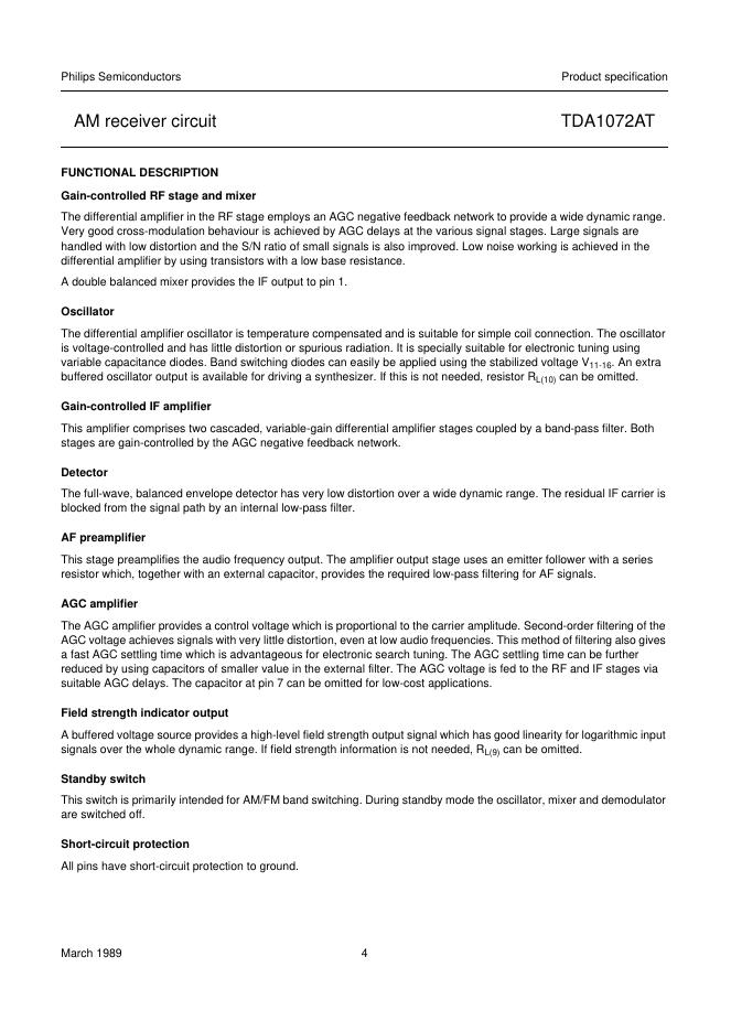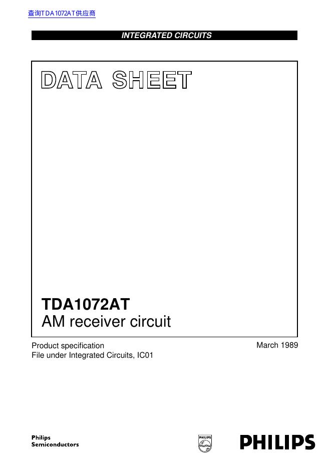 PHILIPS TDA1072AT AM receiver circuit 数据手册.pdf