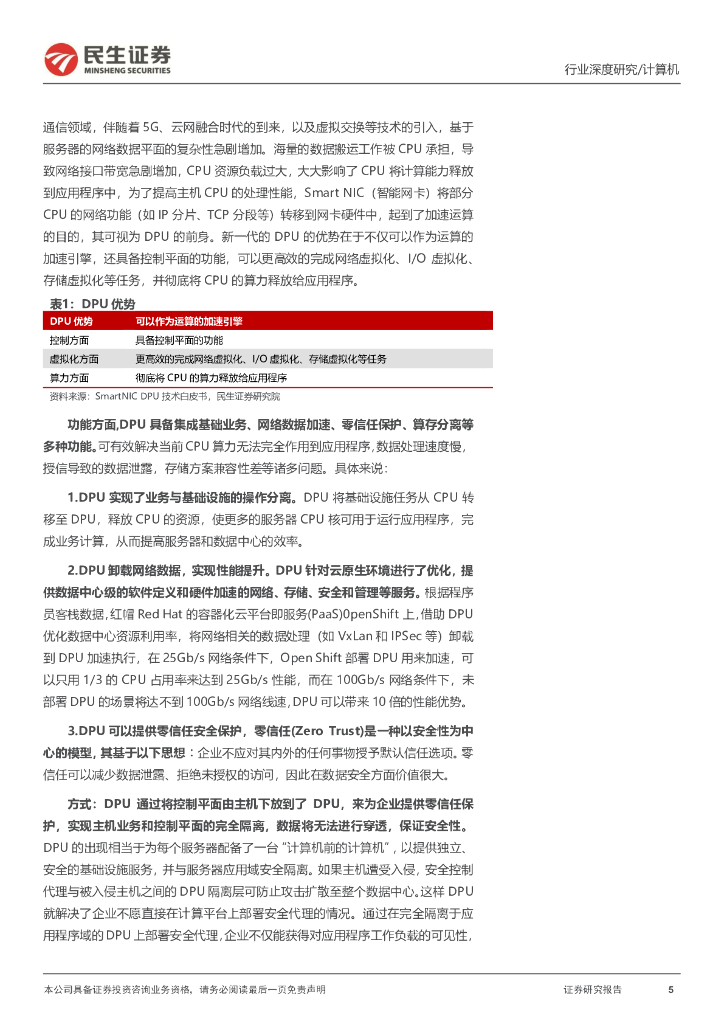 民生证券:计算机行业深度:ChatGPT推高算力需求,DPU支撑算力效率提升.pdf
