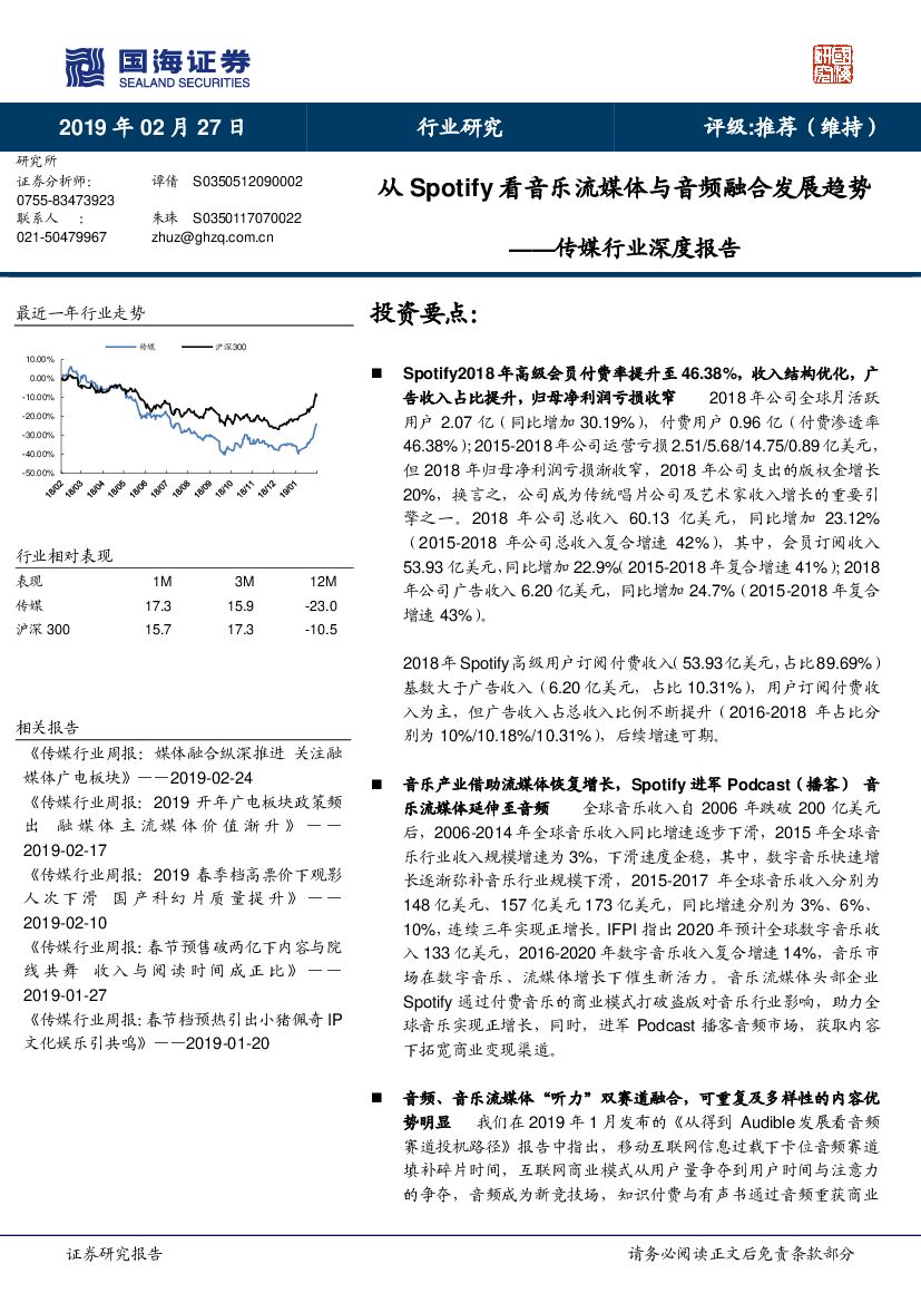 国海证券:传媒行业深度报告:从Spotify看音乐流媒体与音频融合发展趋势.pdf