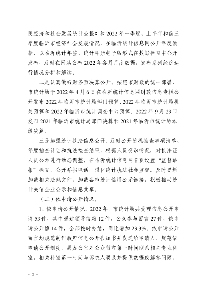 临沂市统计局2022年政府信息公开工作年度报告.pdf