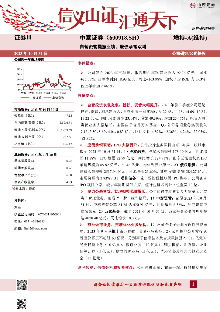 山西证券:中泰证券(600918)-自营资管提振业绩,股债承销双增.pdf