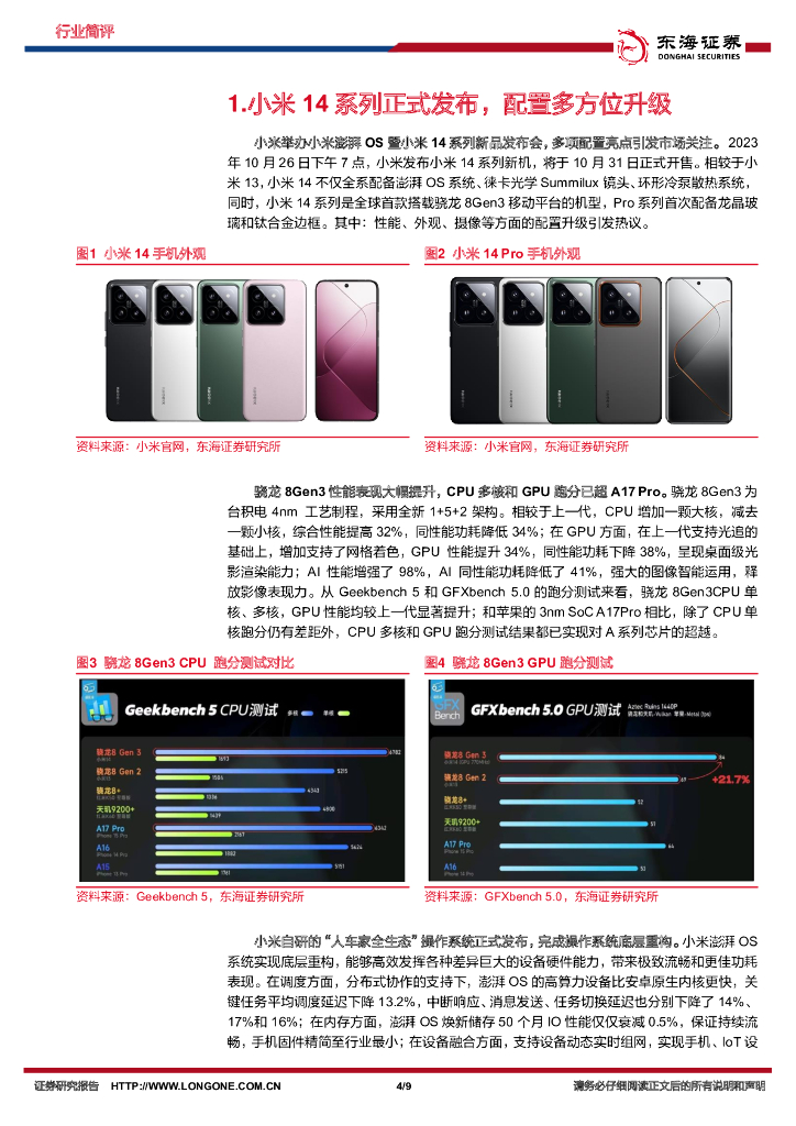 东海证券:电子行业简评:小米14销量首周即破百万,双十一全渠道支付金额224亿,关注手机国产供应链.pdf