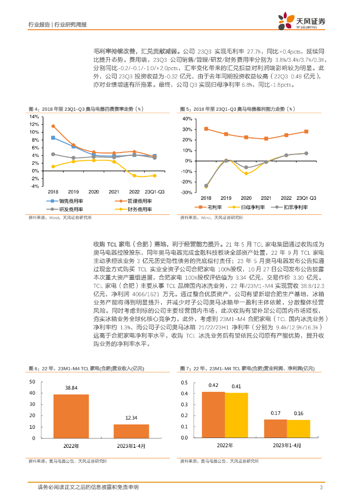 天风证券:家用电器23W44周度研究:奥马Q3营收高增,TCL家电(合肥)收购推进.pdf