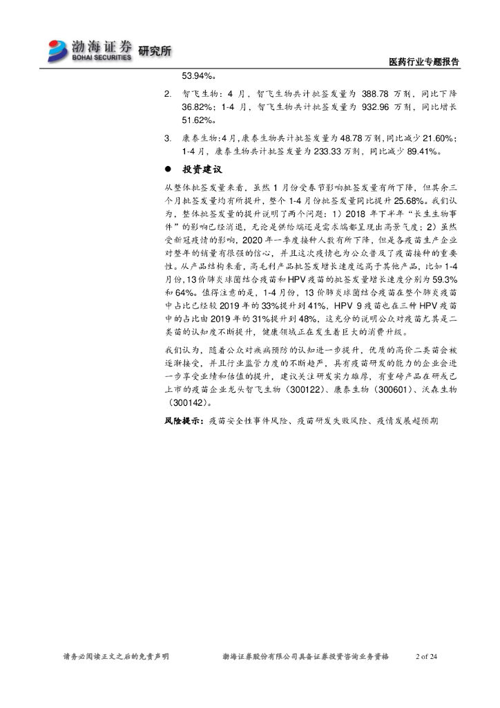 渤海证券:医药行业专题报告:四月份疫苗批签发:高端产品批签发比重不断加大.pdf