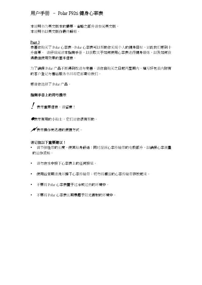 Polar F92ti 健身心率表 用户手册.pdf