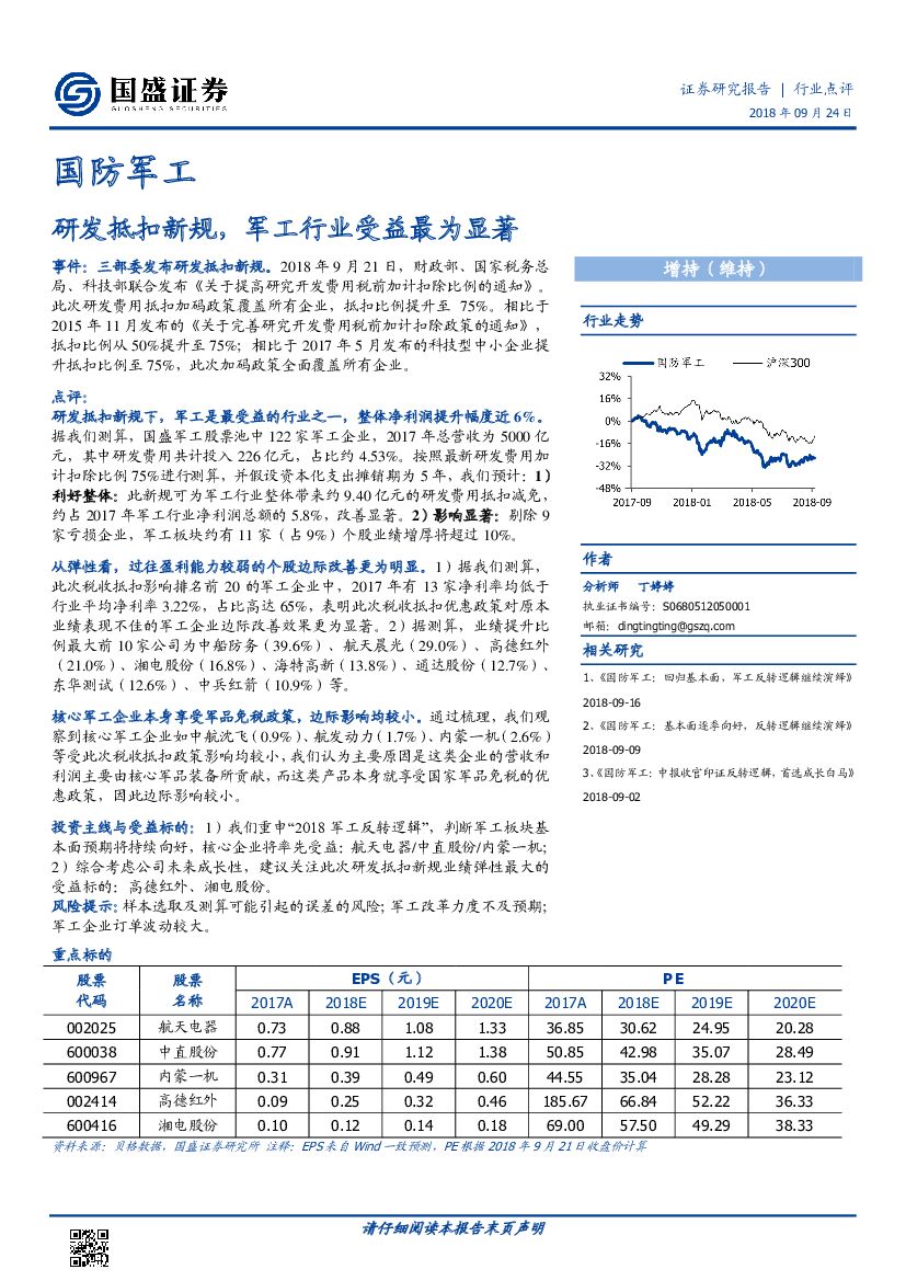 国盛证券:国防军工行业点评:研发抵扣新规,军工行业受益最为显著.pdf