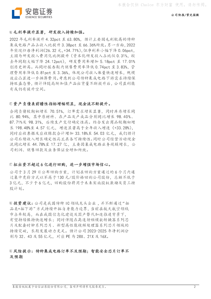 安信证券:紫光国微(002049)-2022年归母净利润增长33.28%,后续业绩高增可期.pdf
