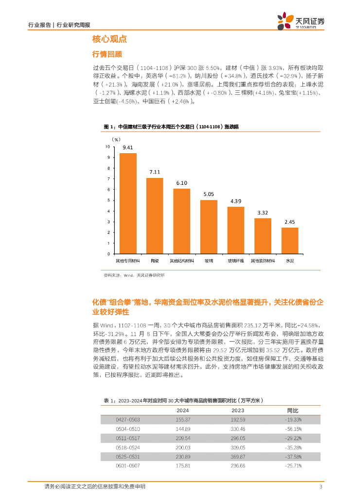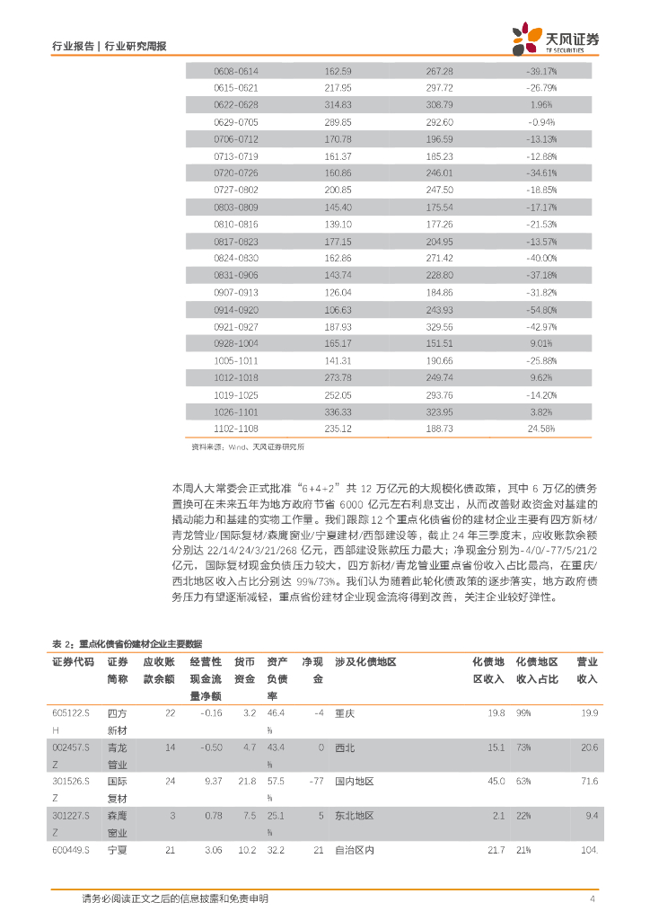 天风证券:建筑材料行业研究周报:化债“组合拳”落地,华南资金到位率及水泥价格显著提升,关注化债省份企业较好弹性.pdf