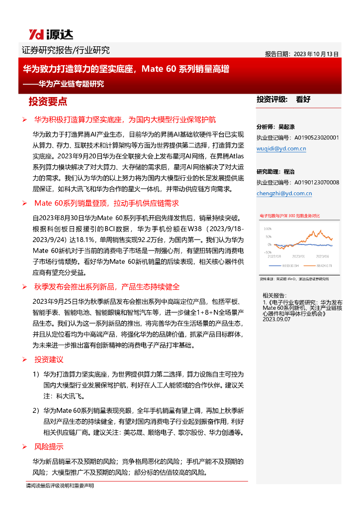 源达信息:华为产业链专题研究-华为致力打造算力的坚实底座-Mate60系列销量高增.pdf