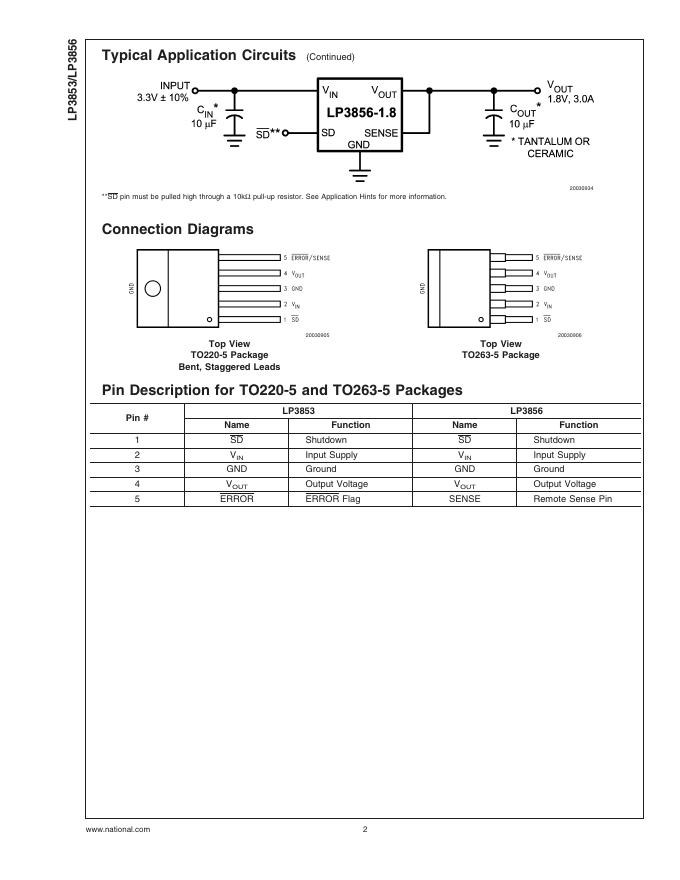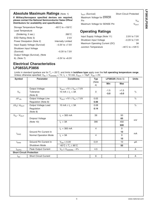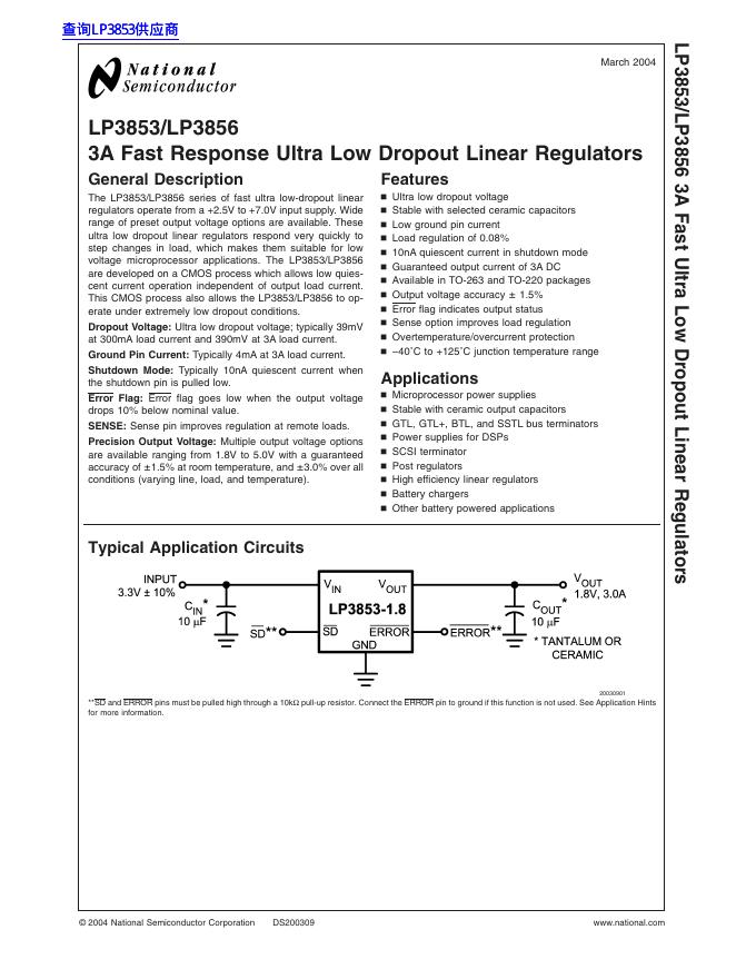 National Semiconductor LP3853/LP3856 3A Fast Response Ultra Low Dropout Linear Regulators 数据手册.pdf