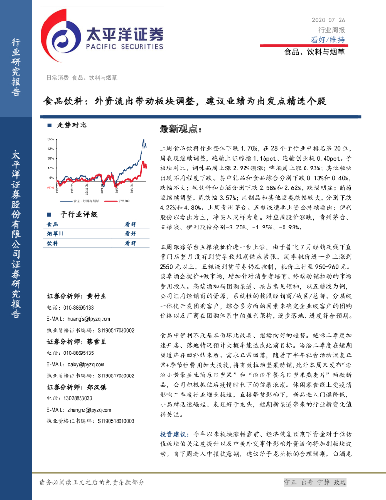 太平洋证券:食品饮料:外资流出带动板块调整,建议业绩为出发点精选个股.pdf