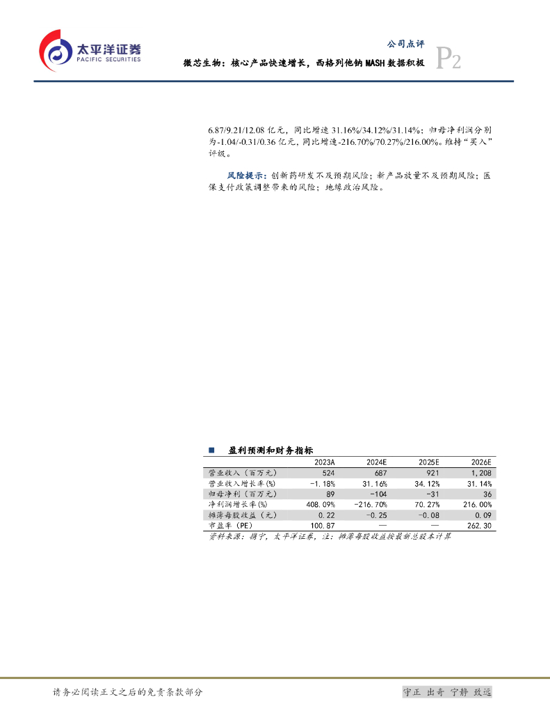太平洋证券:微芯生物:核心产品快速增长,西格列他钠MASH数据积极.pdf