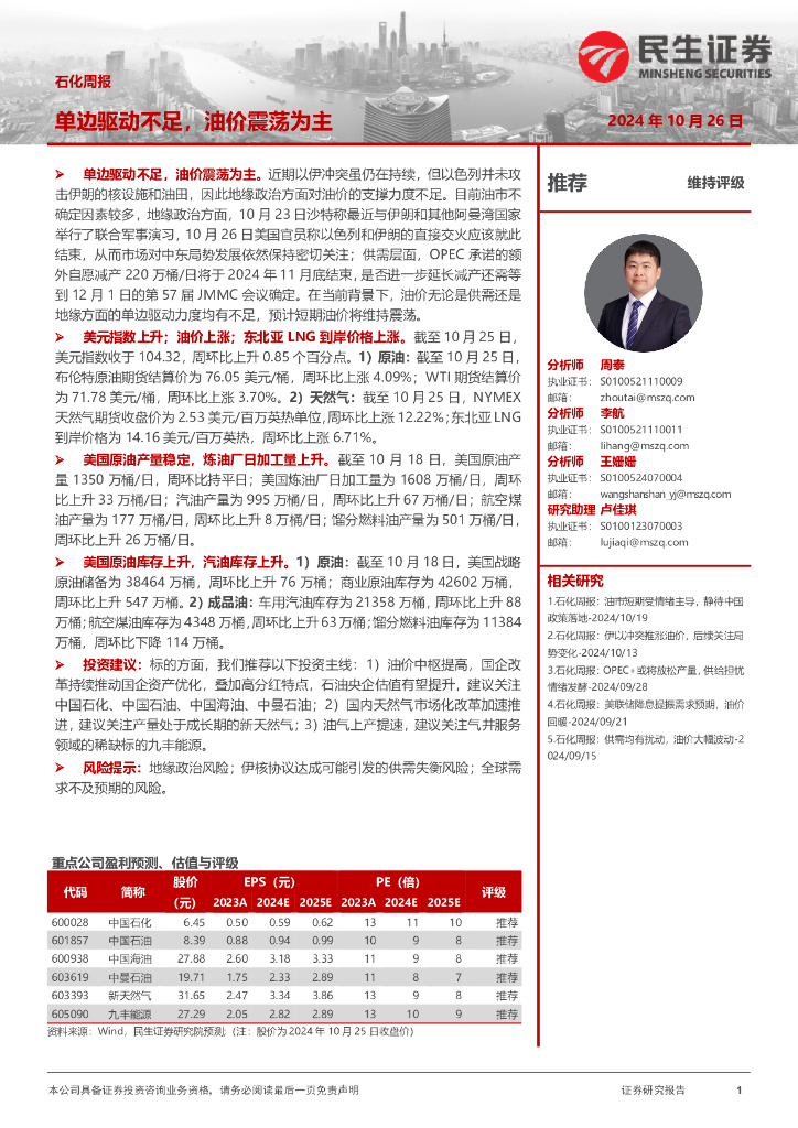民生证券:石化周报:单边驱动不足,油价震荡为主.pdf