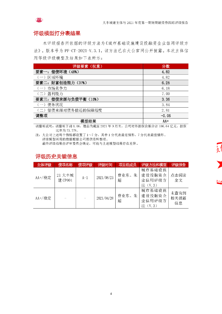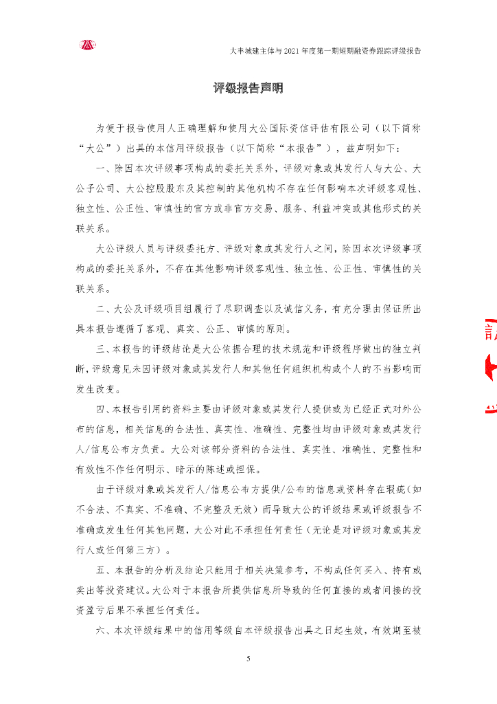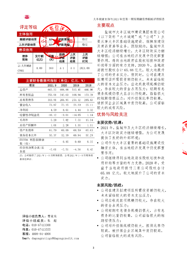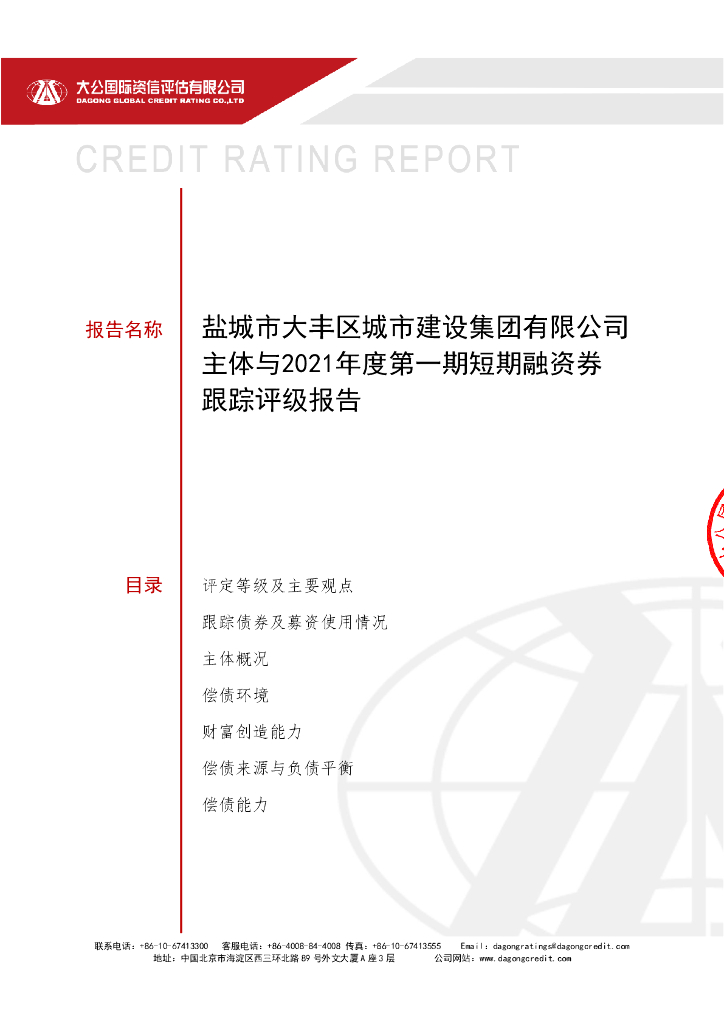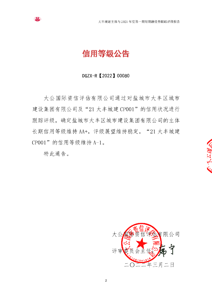大公:盐城市大丰区城市建设集团有限公司主体与2021年度第一期短期融资券跟踪评级报告.pdf