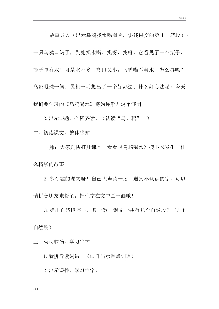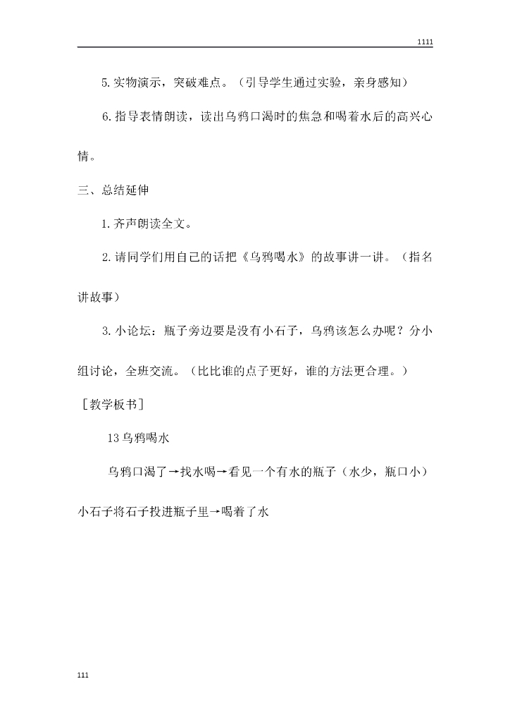 一年级语文(教案1)13 乌鸦喝水教学设计.doc