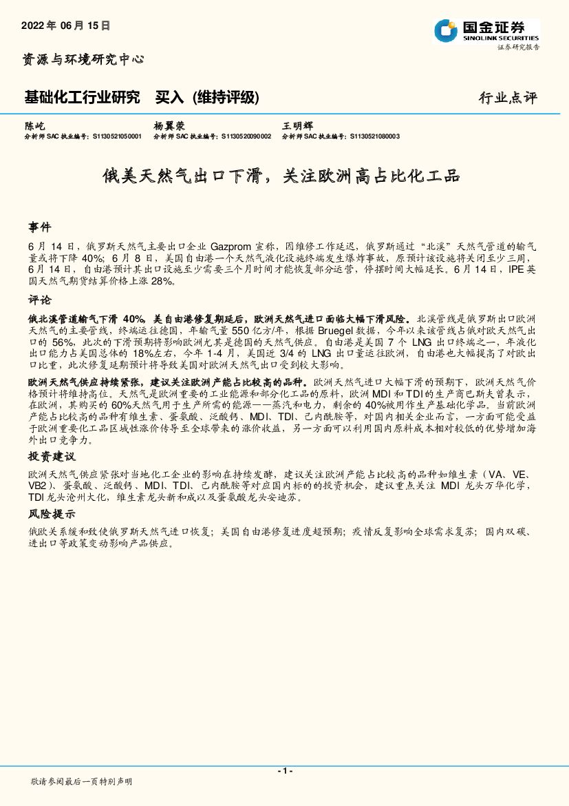 国金证券:基础化工行业研究:俄美天然气出口下滑,关注欧洲高占比化工品.pdf