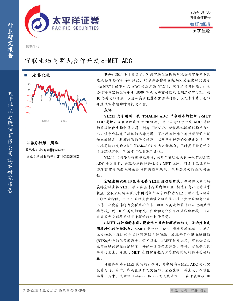 太平洋证券:医药生物行业点评报告:宜联生物与罗氏合作开发c-MET ADC.pdf