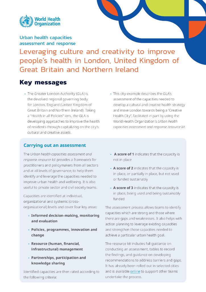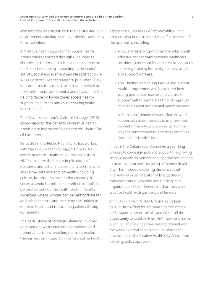 WHO世界卫生组织:2024年城市卫生能力评估和应对:利用文化和创造力改善大不列颠及北爱尔兰联合王国伦敦人民的健康报告(英文版).pdf