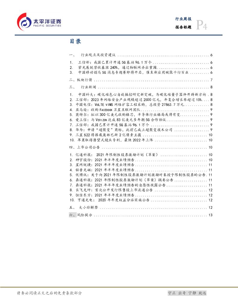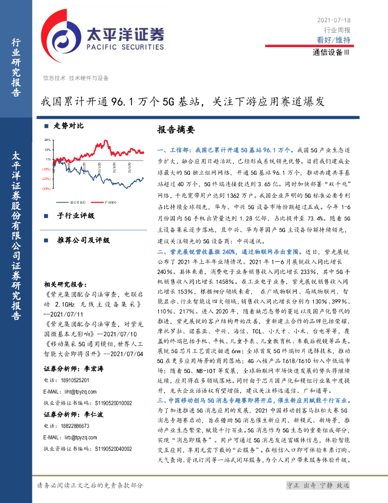 太平洋证券:通信设备Ⅲ行业周报:我国累计开通96.1万个5G基站,关注下游应用赛道爆发.pdf