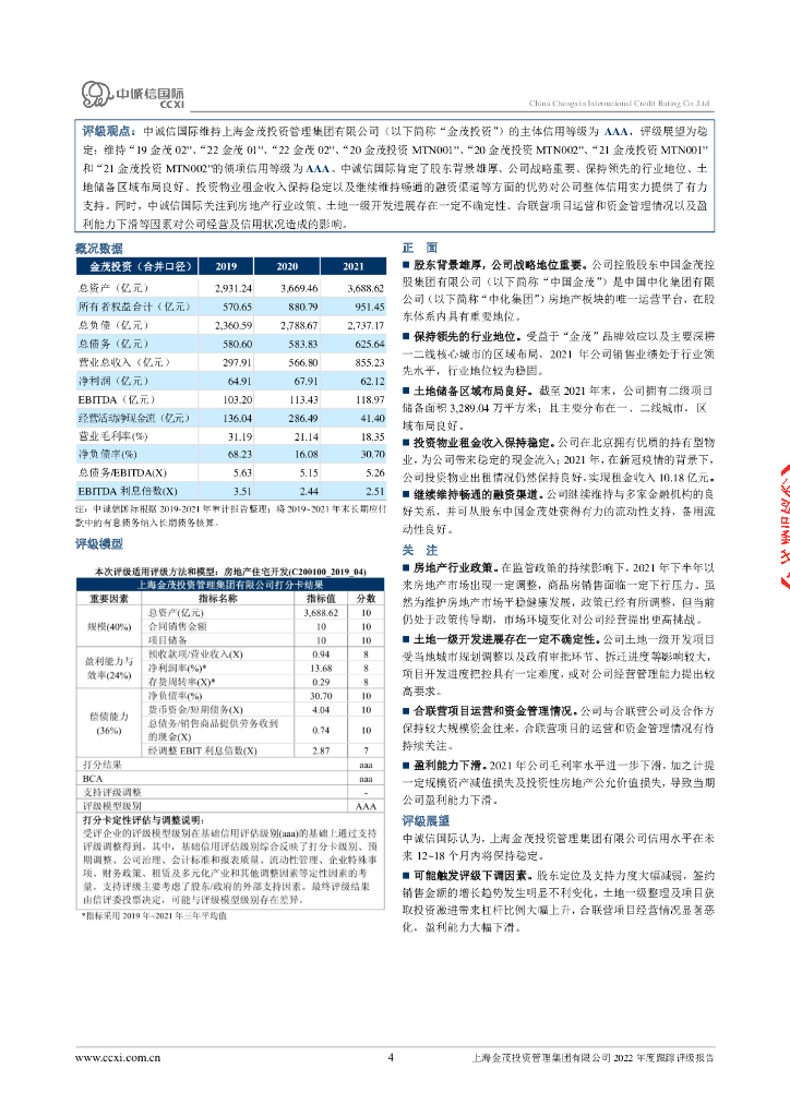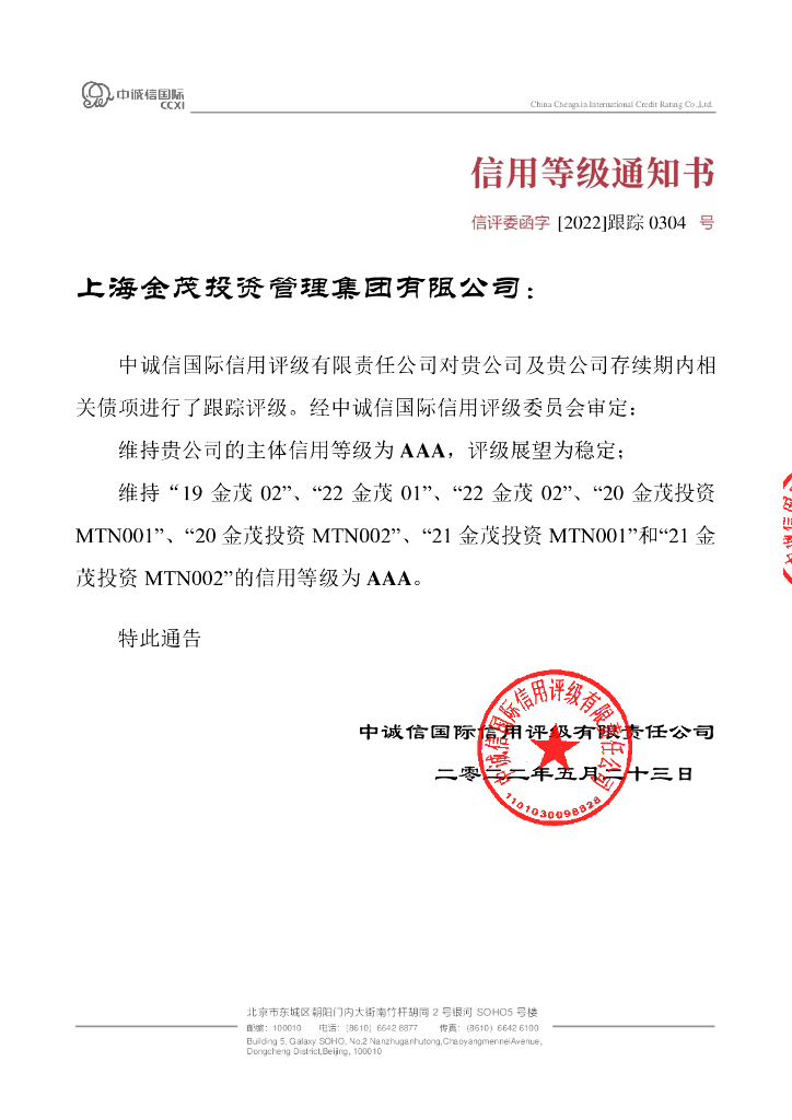 中诚信:上海金茂投资管理集团有限公司2022年度跟踪评级报告.pdf